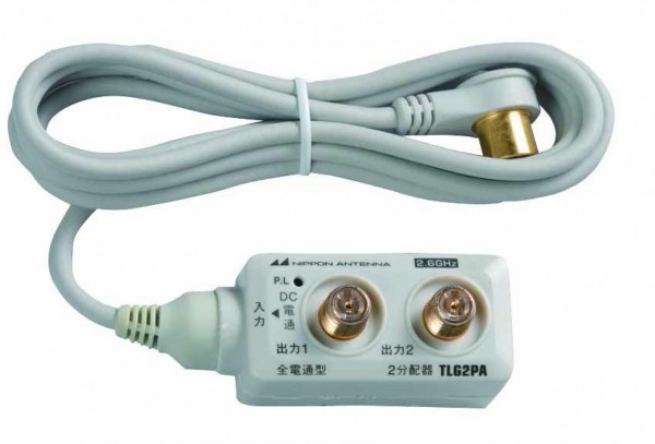 | 仕様 | 全電通タイプ 2分配器 接続端子:プラグ型 全出力端子→入力端子間電流通過(最大DC15V・0.5A) 取扱説明書は台紙に記載 |