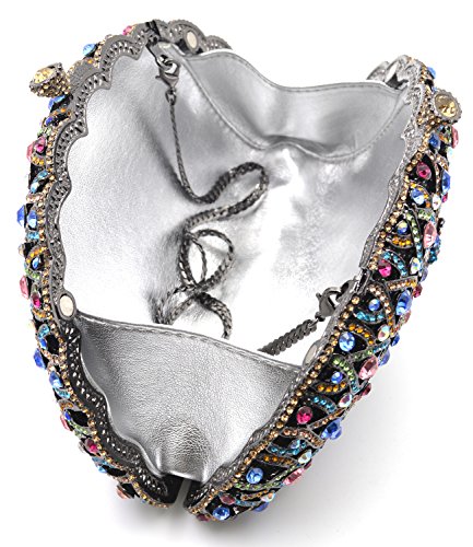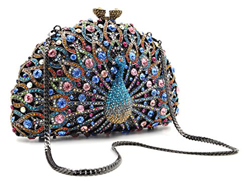 -. Feature : Ladies luxury peacock clutch and evening bags , this is very practical handbag, use to wedding,party ,prom and formal accessories. / Bling-bling delicateness rhinestones and high-quality pu lining . And the size just right,Which can contain the things you need. For example,Install the identity card,ID card and so on. / Magnetic snap is convenient for you to open and close it. / SIZE: Approximate measurement: 6.5 x 4 x 2.5 inch drop (L x H x D) and 10 inch drop metal wrist chain