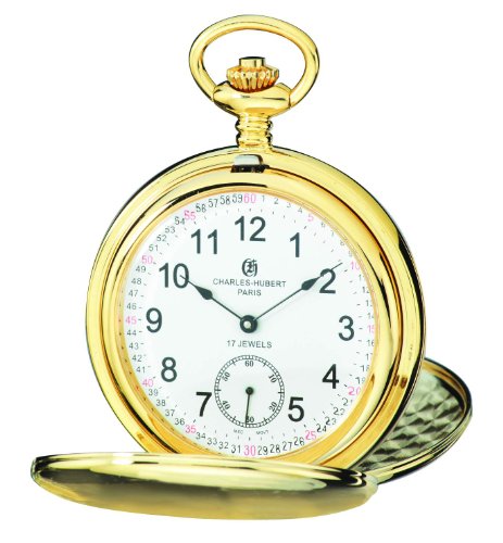 -. Title : Charles-Hubert, Paris 3908-GRR Premium Collection Gold-Plated Stainless Steel Satin Finish Double Hunter Case Mechanical Pocket Watch