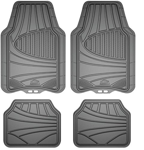 Armor All all-weather floor mats are designed to be trimmed so that they may be customized to fit almost any vehicle. They are engineered to ensure the mats will not curl, crack or harden in sub-zero weather. The product also features 'Carpet Claw' anti-slip backing.Feature