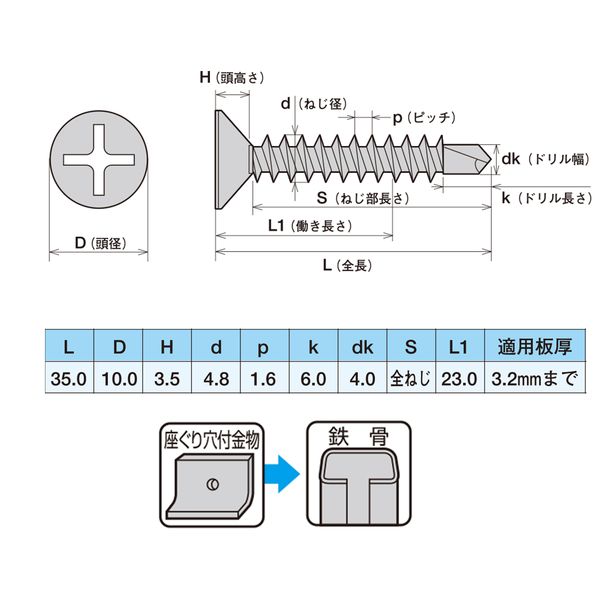 ●座ぐり穴付金物+鉄骨用ドリルビス