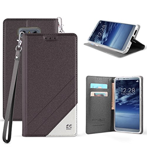 -. Title : LG G6 Case PU Leather TPU 2 Tone Card Slot Magnetic Close Strap Kickstand Black White With Clear Gel