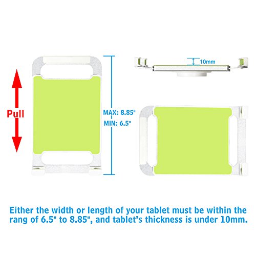 Loading capacity : 3.3 lbs, holding 7-12.5” iPad, and Samsung, LG and other tablet on 0.3-3.1 inch thickness desk. Either the width or the length of your tablet must be within the range of 6.5" to 8.85", and tablet thickness must be less than 10mm.