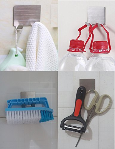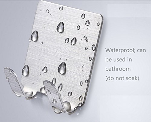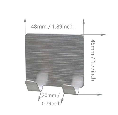 -. Feature : Unique Dual-holder Design: silver color, smaller, holds more, balance-holding, sturdy makes a unique dual-holder hook / Premium Quality: Solid T-304 premium-grade stainless steel construction, 18/10 Chromium/Nickel content to protect against corrosion & rust, ensuring good quality and longevity / Wide Applications: Designed to hold a wide variety of items such as coats, hats, handbags, umbrellas, towels or robes, etc / Extensive Range: Suitable for all kinds of smooth surfaces like tile, stainless steel, glass, wood , metal or plastic surface, and on refrigerator, washing machine, closet, etc. / Note: Please peel off the blue protective film before applying the hook somewhere