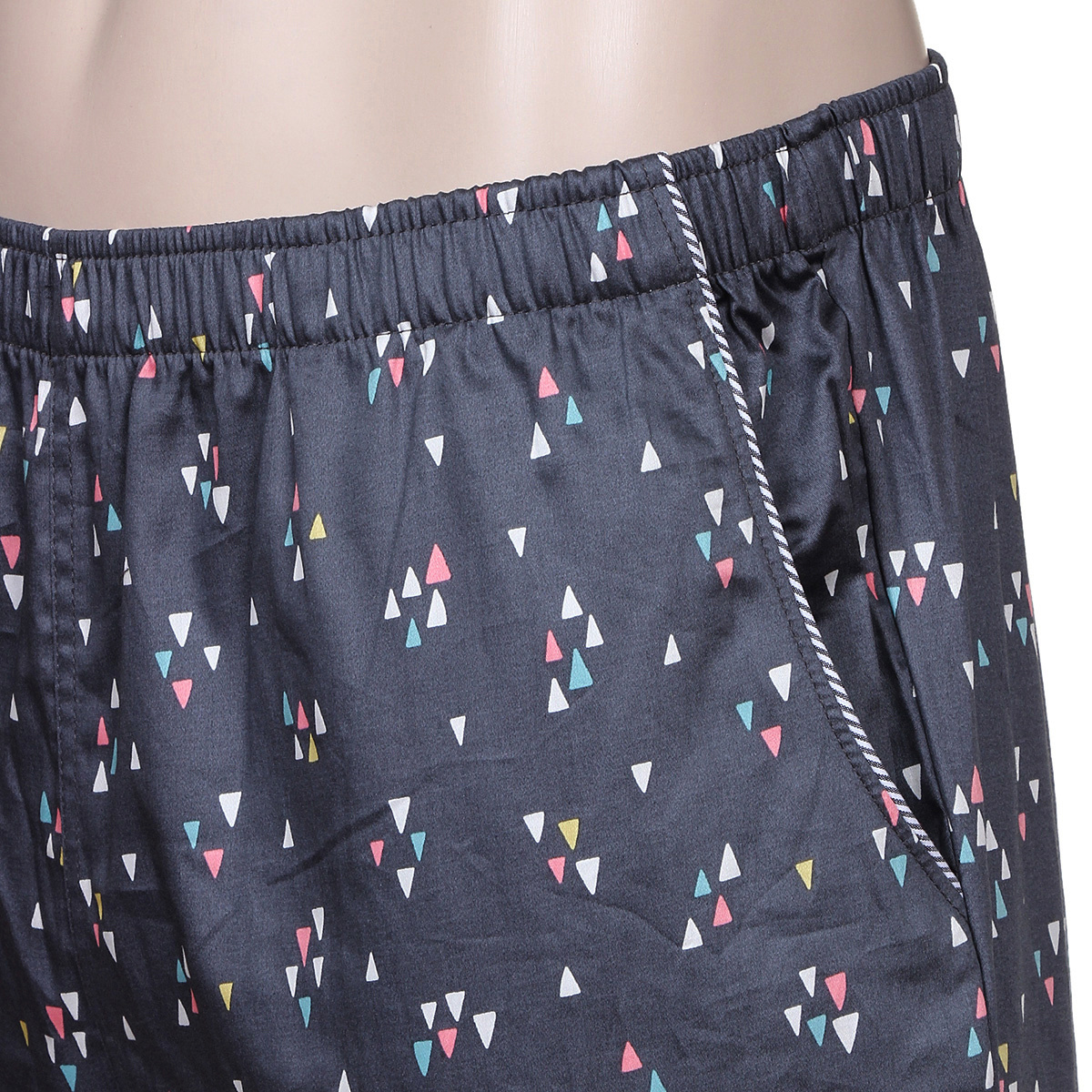 집에서 실내복이나 잠옷으로 편하게 착용하실 수 있는 면 100%의 남성 이지웨어 하의입니다.순면 제품인 만큼 간편하고 편안하게 입으실 수 있으며 주머니가 있어 매우 실용적인 디자인입니다.여러 가지 색상의 세모 모양과 주머니 부분에 스트라이프 원단을 사용해 포인트를 주었습니다.상의는 세트 상품이 나오지 않아 편한 티셔츠를 받쳐 입으시면 됩니다.커플 여자 하의 : EZ1600P