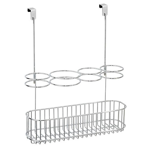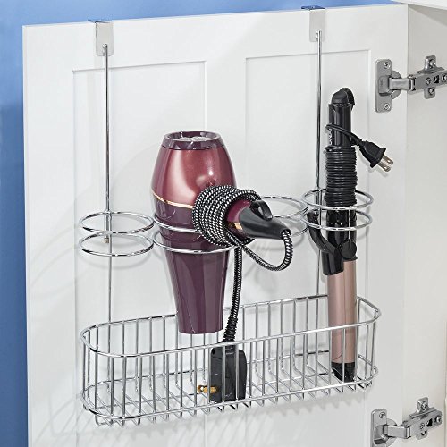 InterDesign Classico Over the Cabinet Hair Care Tools Organizer for Hair Dryer, Flat Iron, Curling Wand, Straightener – Chrome