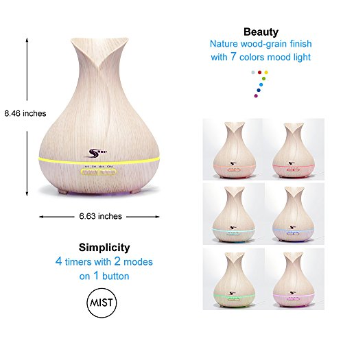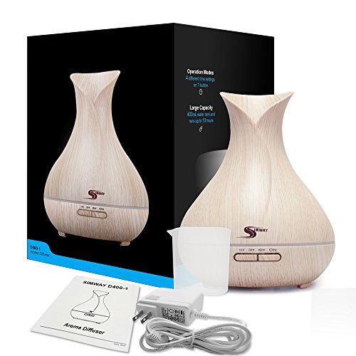 Aroma Essential Oil Diffuser, 2017 Simway Aromatherapy 400mL Ultrasonic Cool Mist Aroma diffuser Humidifier with Waterless Auto Shut-off, 7 color LED lights...