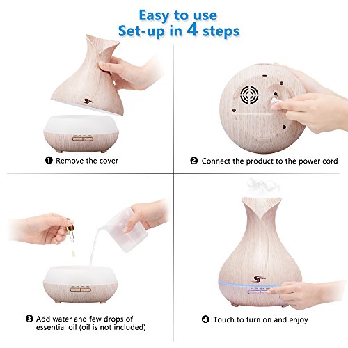 - LARGE CAPACITY - This beautiful ultrasonic aromatherapy oil diffuser with 400mL large water capacity can spread mist up to 12 hours. It will save your time of refilling.