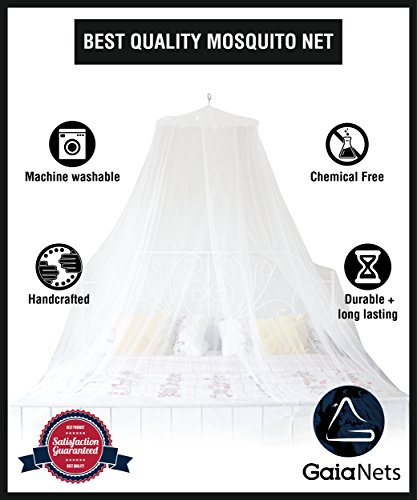 MOSQUITO NET WITH BONUS REPELLENT BRACELET AND CARRY POUCH- EXTRA LARGE 98 INCHES IN HEIGHT KING SIZE BED - HANGING KIT INCLUDED MONEY BACK GUARANTEE
