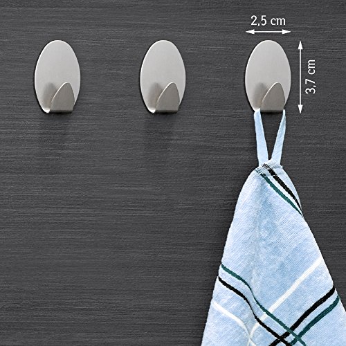- Durable stainless steel oval self-adhesive permanent hooks. Size: 25×37 mm, 3 pc/set