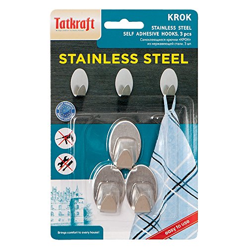 Tatkraft Krok Permanent Small Self-Adhesive Hooks, Stainless Steel Oval 3 Pack