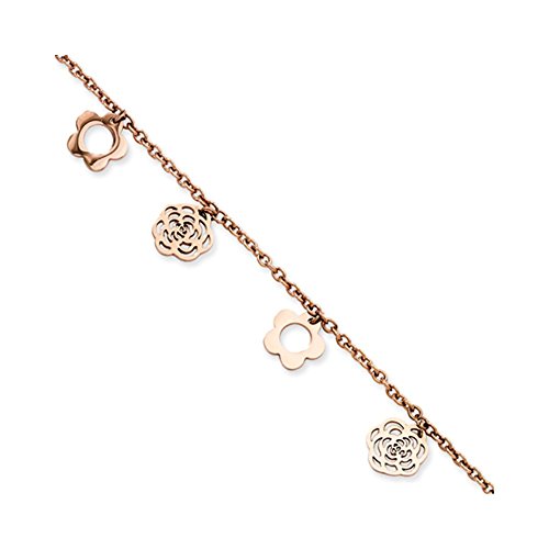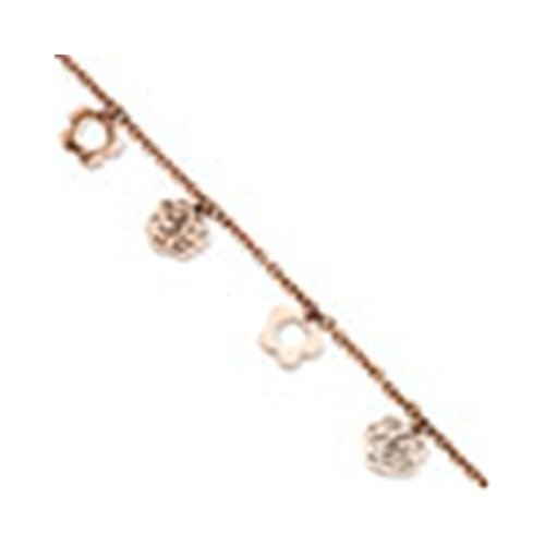 -. Title : Stainless Steel Pink IP-plated Flowers 10.5in Anklet Length 10.5"