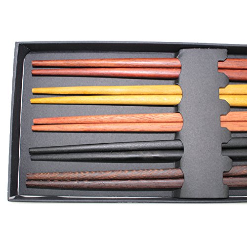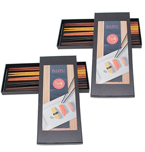 Set of 2 Boxes(10 Pairs)- Multicolored Reusable Japanese Style Sushi Chopsticks Natural Wooden Unique Family Pack Gift Set(D13258)