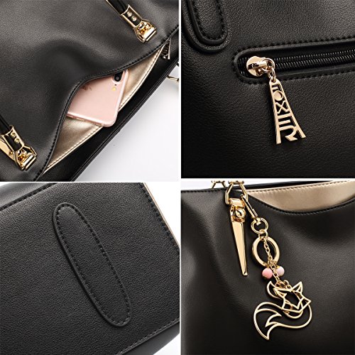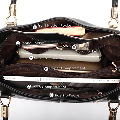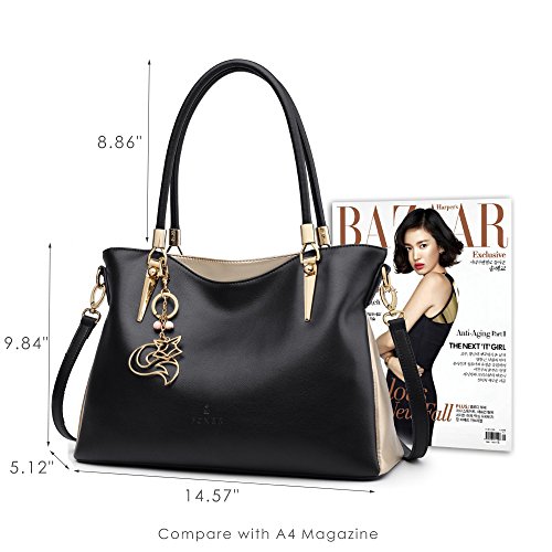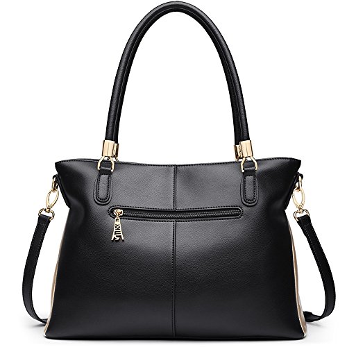 -. Feature : COLOR BLOCKING DESIGN - Our leather handbag features stylish color blocking design, elegant and chic, especially for vogue women. / PREMIUM LEATHER - Made of high quality cow split leather, enhancing softness and comfort. Polyester silk lining and premium hardware can stay in good condition even if used for a long time. / LARGE CAPACITY - This leather purse measures about 14.57" L x 5.12" W x 9.84" H, handle about 8.86" high. Large capacity can easily hold your books, iPad, cellphone, umbrella, makeup and other stuff. / STRUCTURE - Our tote bag comes with 2 main compartments, 1 zipper compartment, 1 side zip pocket, 1 phone pocket, 1 card pocket, 1 back zipper pocket and 1 front hidden pocket. / IDEAL FOR ANY OCCASION - Perfect for using in office, casual, dating, shopping, travel or any other daily occasions. Fit for young girls or women.