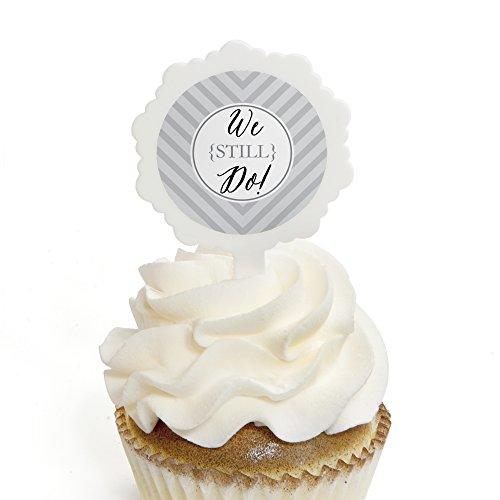 We Still Do - Cupcake Picks with Stickers - Wedding Anniversary Party Cupcake Toppers - 12 Count