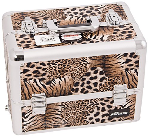 Craft Accents 6-Tiers Extendable Tray Professional Aluminum Cosmetic Makeup Case, Brown Leopard, 176 Ounce