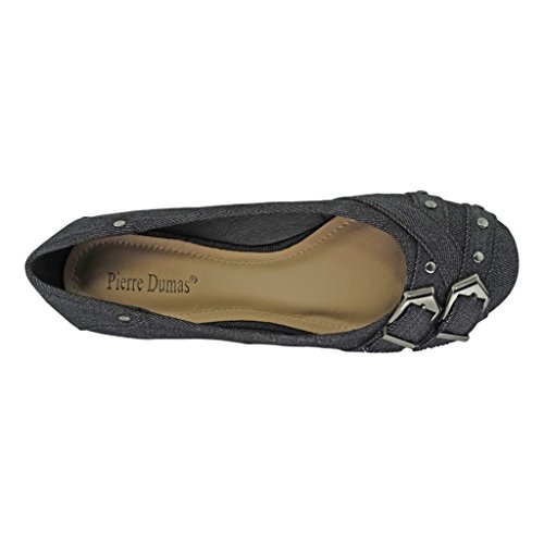 Binding : Apparel Product Description These fun and flirty slip-on flats from Pierre Dumas are perfect with your favorite pair of jeans! These comfortable shoes are lightweight and feature denim uppers, round toes and adorable buckle strap accents across the toe. Lightly cushioned footbed for added comfort. Durable, flexible outsoles. Slip-on for easy on and off. All manmade materials. Made in China. 0