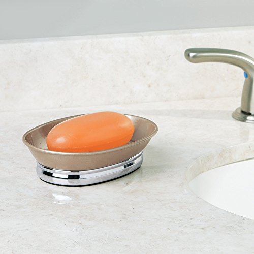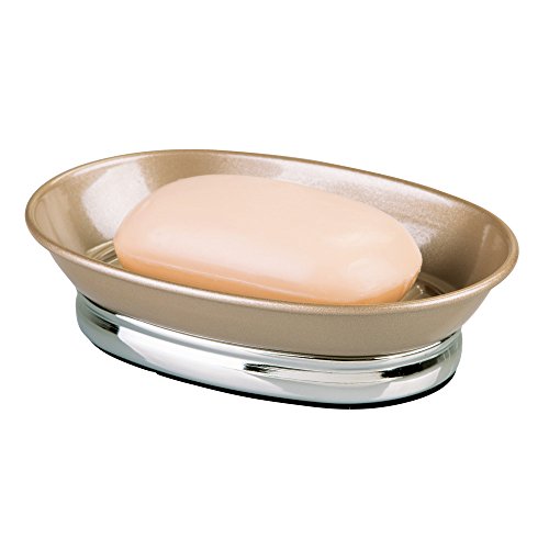 InterDesign York Metal Soap Dish - Perfect for Bathrooms, Showers or Kitchen Sinks - Pearl Champagne/Chrome