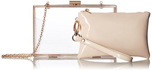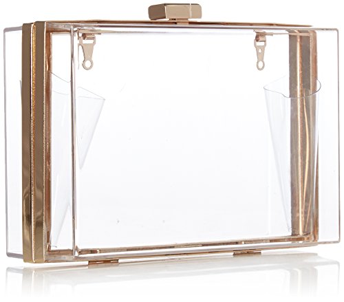 Product DescriptionLadies small clear box clutch with interior pu pouch. Snap closure. Chain shoulder strap. Inside pocket0
