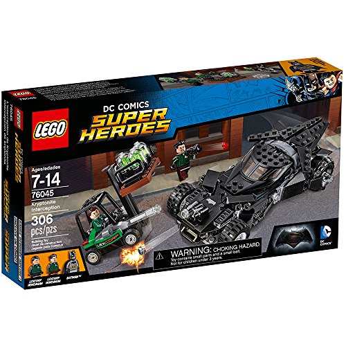 -. Binding : Toy -. Brand : LEGO -. EAN : 0673419250368 -. Feature : Includes 3 minifigures: Batman and 2 LexCorp henchmen / The Batmobile features an opening cockpit for Batman, big wheels and 2 stud shooters / The back of the forklift can also be detached as the battle hots up / Batmobile measures over 1" (5cm) high, 7" (18cm) long and 3" (10cm) wide / Forklift measures over 3" (8cm) high, 3" (10cm) long and 2" (7cm) wide -. IsAdultProduct : 0 -. ItemPartNumber : 6137810 -. Label : LEGO -. Manufacturer : LEGO -. Model : 6137810 -. MPN : 6137810 -. PackageQuantity : 1 -. PartNumber : 6137810 -. ProductGroup : Toy -. ProductTypeName : TOYS_AND_GAMES -. Publisher : LEGO -. ReleaseDate : 2016-01-01 -. Studio : LEGO -. Title : LEGO Super Heroes Kryptonite Interception 76045 -. UPC : 673419250368 -. Warranty : No Warranty