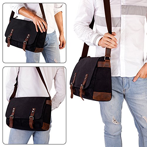 -. Title : SUVOM Mens Canvas Leather Laptop Messenger Bag Shoulder Crossbody Bag School Satchel-14 Inch