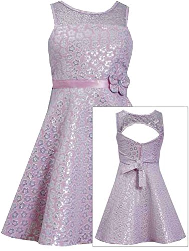 -. Title : Tween Girls 7-16 Pink Silver Floral Illusion Fit Flare Social Party Dress