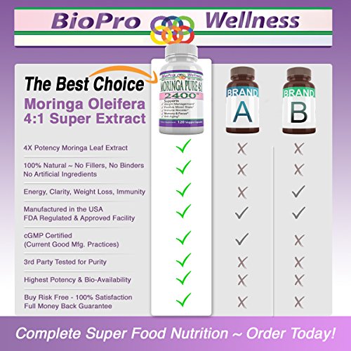BioProWellness 100% PURE MORINGA OLEIFERA EXTRACT 4X Potency Provides You with Ultimate Pure and Potent Super Food.