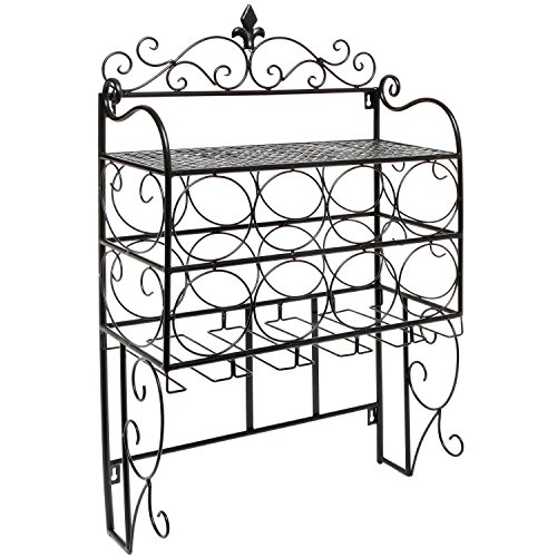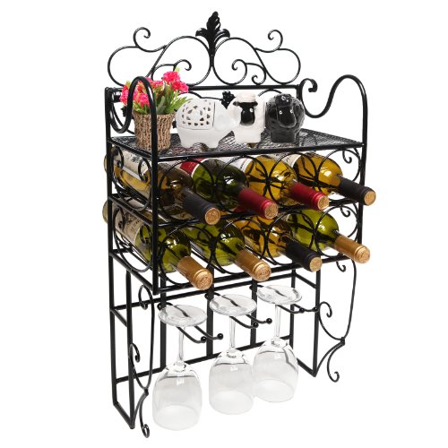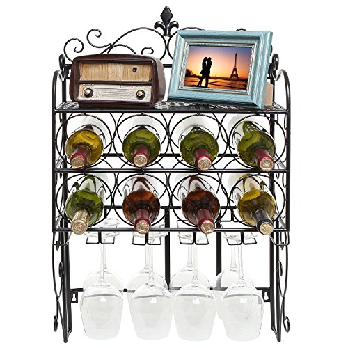 - Feature : Holds up to 8 bottles (max diameter of 3.1") and 6 stemware glasses. / Solid metal construction with a classic black finish. / Features 2 keyhole slots for wall mounting. Please use proper mounting hardware (wall anchors, studs, brackets, etc.). / Includes a wall-mounted rack and a MyGift® microfiber cleaning cloth. Other items not included. / Approximate Dimensions: 15" L X 8" W X 28" H