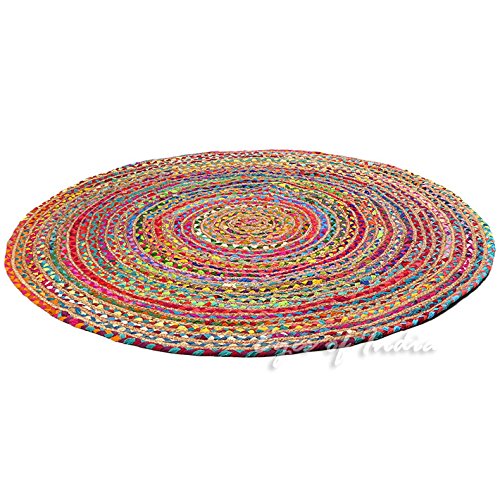 -. Brand : Eyes of India -. Feature : ***GET 15% OFF YOUR ENTIRE ORDER*** when you buy any 2 items or more shipped from and sold by Eyes of India! / PLEASE NOTE: This item is made exclusively by EYES OF INDIA and we do not resell our products. If the "Ships from and Sold By" above says any seller besides "Eyes of India_” then please click on “Offers” to select Eyes of India as the seller. Otherwise the item will be different from the image and lower quality. / Color: Multicolor / Size: 4 ft. (120 cm) / Material: Rolled cotton thread -. Label : Eyes of India -. Manufacturer : Eyes of India -. ProductGroup : Furniture -. ProductTypeName : HOME_FURNITURE_AND_DECOR -. Publisher : Eyes of India -. Studio : Eyes of India -. Title : EYES OF INDIA - 4 ft ROUND TAN NATURAL JUTE SISAL WOVEN AREA BRAIDED RUG Boho Bohemian Indian