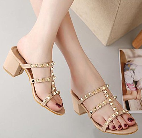 Binding : Apparel Product Description Every woman wants to have one pair of shoes which is unique and attractive. How about you? If so, this pair will be a good choice for you. The trendy sandals are designed breathable, anti-slip, mid-heeled and open toe. It's made studded which makes you more trendy. The heel is well designed according to the size of women's feet which can protect your feet very well. The soft bottom is comfortable for you while you are shopping. In this summer, it's a good choice for you to be in the sandals when you go to the beach. Young ladies can buy one with your close friends or you can choose them for your family members. With one, you will be the focus of fashion. You can match any clothes with them as you like. You can choose one according to your size. Welcome to our store. IDIFU?is?a?registered?trademark?in?the?USA. We always work on helping every fashion lady to be unique and different. As a trendsetter, YOU ARE DIFFERENT! 0