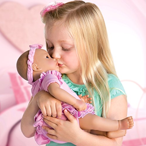 16"baby powder scented vinyl play doll comes ruffled knit dress
