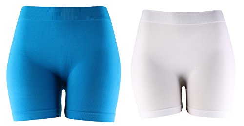 Title : Solid Mini Short Spandex Yoga Leggings 2 Pack (12 inch, Turquoise / White)