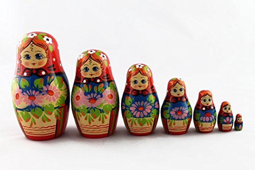 -. Title : Matryoshka Russian Nesting Doll Matrioshka Babushka Beautiful Lilies Flowers Set 7 Pieces Pcs Hand Painted Handmade Souvenir Gift Handicraft