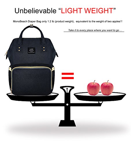 # Light weight MonoBeach Diaper Bag only 1.2 lb (product weight), equivalent to the weight of two apples!!! Take it to every place where you want to go. 0