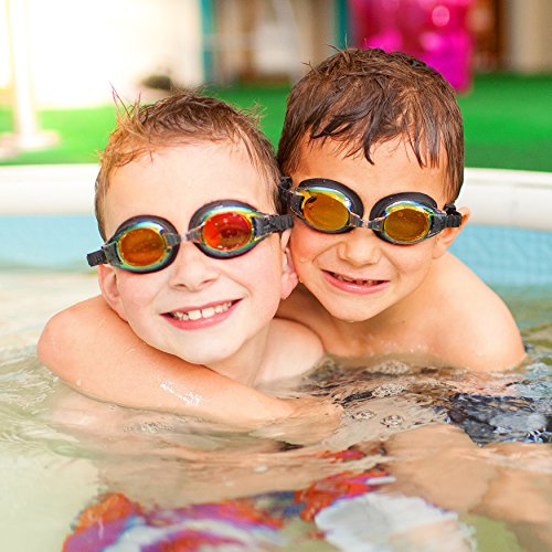 ON SALE! Best Kids Swim Goggles - Anti Fog - Mirror Coating - Latex Free - Easy Adjustable Strap - Clear Vision - No Leak Design - Free Protective Case - For Kids and Early Teens-PRIME