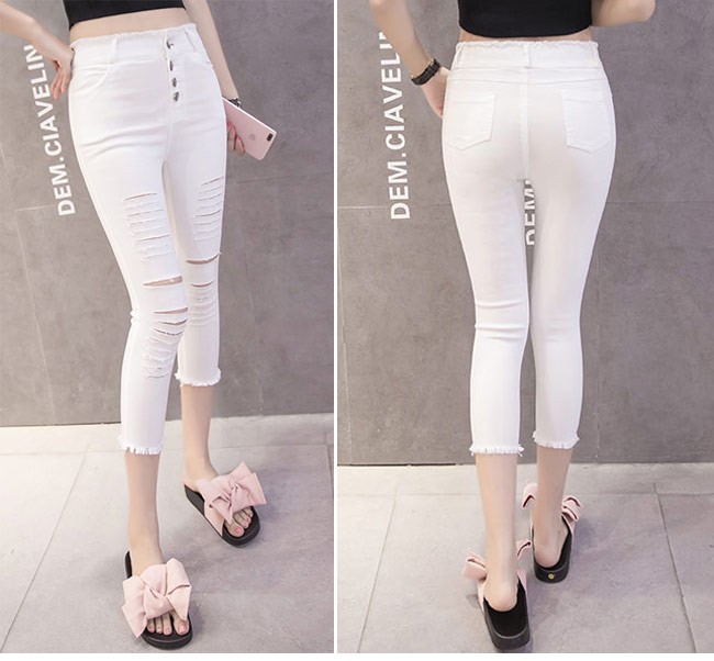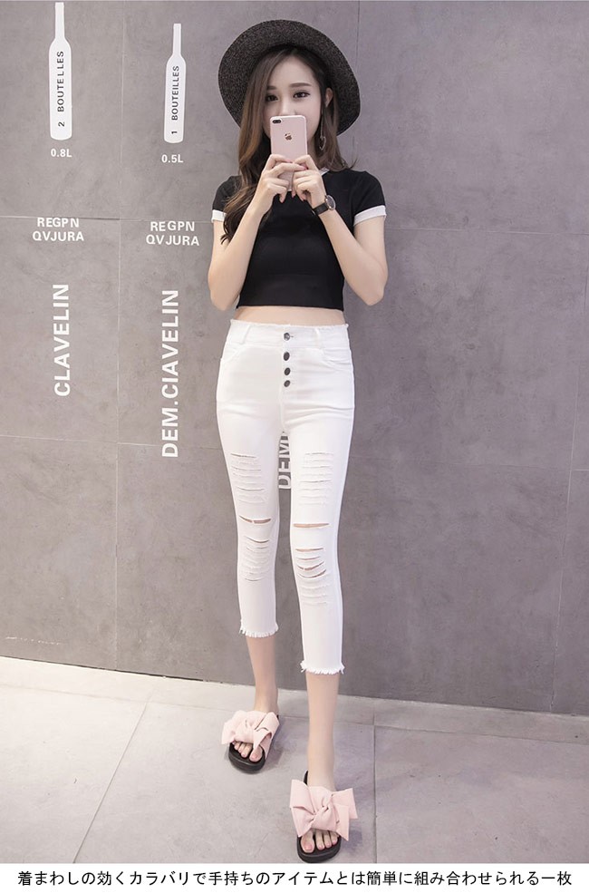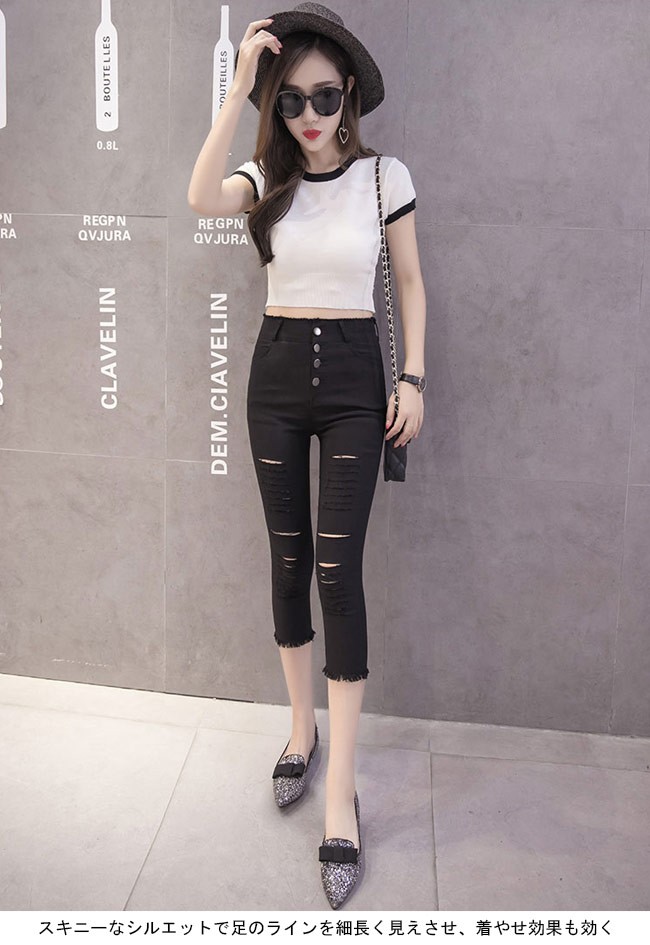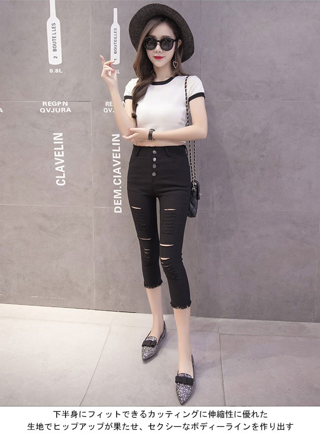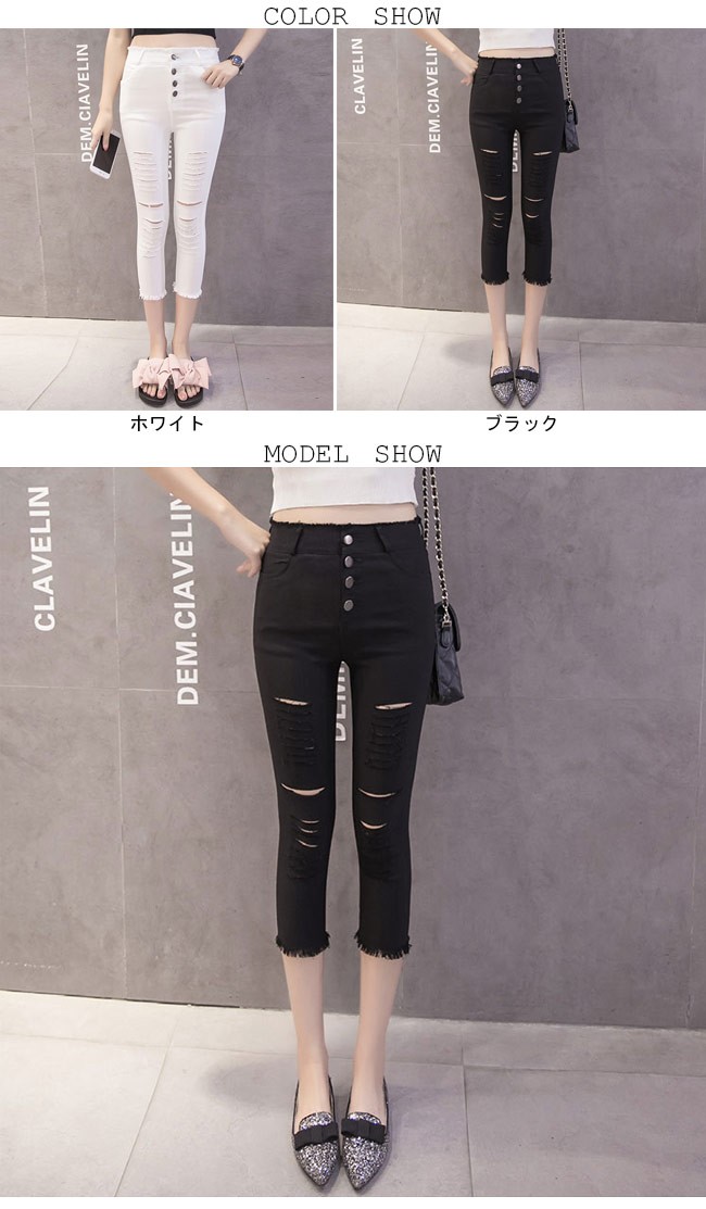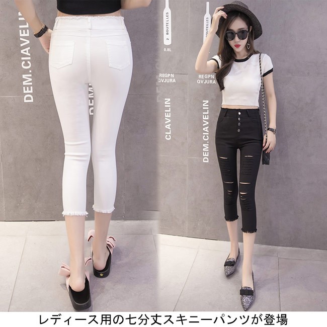 レディース レギパン 七分丈 スキニーパンツ ダメージ加工 女性用 ボトムス 夏物 レギンス クロップドパンツ 七分丈パンツ ヒップアップレディース用の七分丈スキニーパンツが登場下半身にフィットできるカッティングに伸縮性に優れた生地でヒップアップが果たせ、セクシーなボディーラインを作り出すスキニーなシルエットで足のラインを細長く見えさせ、着やせ効果も効くポイントはトレンディーなダメージ加工と足裾にほつれ加工が施され、シンプルなオシャレ感で魅せる着まわしの効くカラバリで手持ちのアイテムとは簡単に組み合わせられる一枚カラー:ホワイト ブラック素材 ポリエステルサイズ(cm) S M L XL 2XL 3XLS 総丈73 ウエスト67 ヒップ88M 総丈74 ウエスト73 ヒップ92L 総丈75 ウエスト77 ヒップ96XL 総丈76 ウエスト81 ヒップ1002XL 総丈77 ウエスト85 ヒップ1043XL 総丈78 ウエスト89 ヒップ108ご注意:※サイズは平置きサイズです。素人採寸ですので、若干の誤差がございます、ご了承ください。