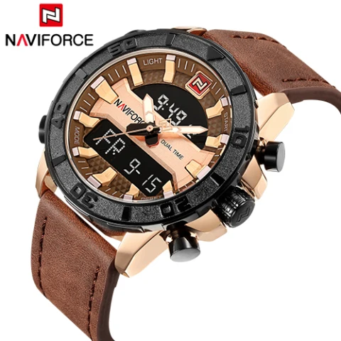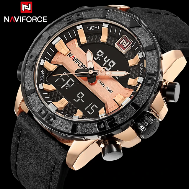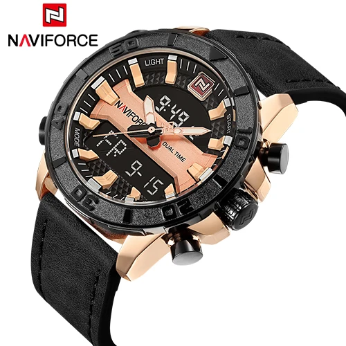 | [해외] 최고 럭셔리 브랜드 NAVIFORCE 남성 패션 스포츠 시계 남성 방수 석영 날짜 시계 남자 가죽 육군 군사 손목 시계 |