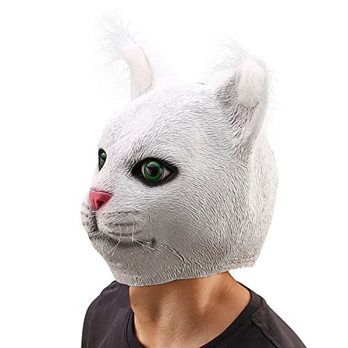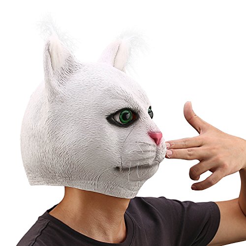 Halloween Costume Cosplay Party Mask Cat Head Mask for Adults, Boys and Girls With wearing this latex mask, you will be a human/cat hybrid on Halloween! Be the focus of the center, and takes lots of laugh.