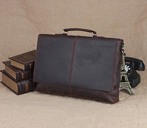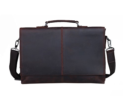 Title : Berchirly 14Inch Vintage Laptop Real Leather Messenger Bag Men's Office Briefcase