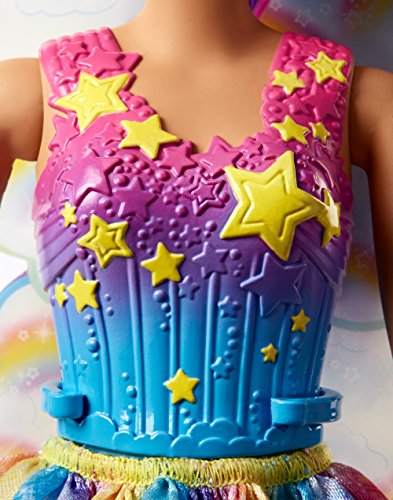 -. Binding : Toy -. Brand : Barbie -. EAN : 0887961533408 -. Feature : Let your dreams fly with this winged Barbie fairy doll from the kingdom of Barbie Dreamtopia Rainbow Cove! / The 11.5-inch doll wears a colorful outfit with stars on her bodice and a rainbow print on her removable skirt that match her rainbow-decorated wings / Fairy shoes and a silvery tiara atop her long purple ponytail spark imaginations / Includes Barbie Dreamtopia winged fairy doll wearing fashions and accessories / Collect all of the Barbie Dreamtopia dolls and accessories and let your stories take flight (each sold separately, subject to reality) -. IsAdultProduct : 0 -. Label : Mattel -. Manufacturer : Mattel -. Model : FJC85 -. MPN : FJC85 -. NumberOfItems : 1 -. PackageQuantity : 1 -. PartNumber : FJC85 -. ProductGroup : Toy -. ProductTypeName : TOYS_AND_GAMES -. Publisher : Mattel -. ReleaseDate : 2017-08-22 -. Studio : Mattel -. Title : Barbie Dreamtopia Rainbow Cove Fairy Doll, Purple -. UPC : 887961533408 -. Warranty : No Warranty
