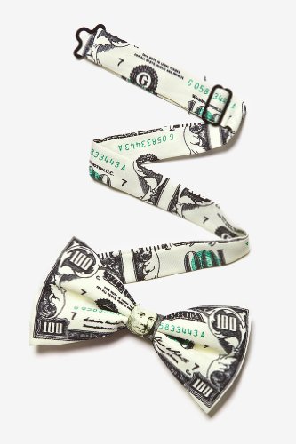 -. Binding : Apparel -. Brand : Wild Ties -. ClothingSize : one size -. Color : Ivory -. Department : mens -. Feature : Features a bold statement of currency / Signifies growth and prosperity / Resistant to wrinkles / Durable polyester construction / Tie measures 2.75 by 4.75 inches -. Model : WT999027 -. MPN : STU997 -. PackageQuantity : 1 -. PartNumber : STU997 -. ProductGroup : Apparel -. ProductTypeName : ACCESSORY -. Size : One Size -. Title : Ivory Poly Bow Tie | $100 Dollar Bill Pretied Bow Tie