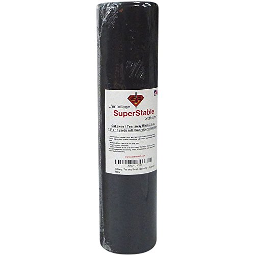 Cut Away/Tear Away Stabilizer Black 2.5 oz 12 inch x 10 Yard Roll. SuperStable Embroidery Stabilizer Backing