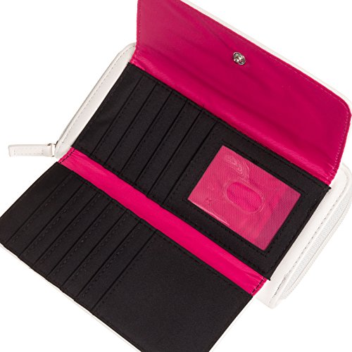 This fashionable and functional Urban Organizer Wallet by Kenneth Cole Reaction holds all of your daily needs. The front flap features a snap closure that will keep the 12 credit card slots, 2 slip pockets, and ID window w/ thumb glide securely in place. Zip open the main compartment to reveal an additional 6 card slots, 3 bill pockets, and a large section that's divided by a zippered coin pouch. Stay versatile and drop this wallet in your bag or carry it around as a clutch. Measures 8" x 4.25" x 1.5".