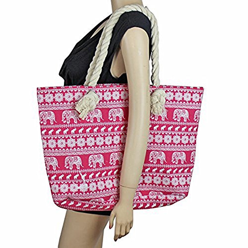 When it comes to totes, you will never have to choose between style and function again! With this sturdy canvas tote is large enough to take all you need for the day, and stylish enough in print and dimensions to ensure you're the most stylin you can be! Great as a day bag, shopping bag, beach bag, an overnight bag, an oversized purse, a diaper bag, and so much more! Zipper closure on top. Purchase a Elephant Canvas Large Tote while supplies last. Dimensions: 19"L x 4"W x 11.5"H. Sturdy Rope Handles : 20"L. Materials: 100% canvas and polyester lining. Color: Pink, White.