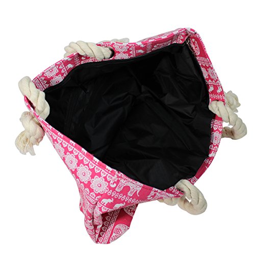 Elephant Canvas Large Tote Rope Handles, Pink