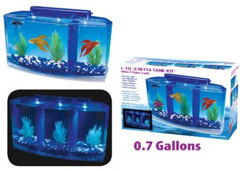 Studio : Penn Plax, INC. Publisher : Penn Plax, INC. Binding : Misc. Product Description The Triple Beta Tank-Deluxe is a 0.7 gallon tank designed for Bettas and other small fish. This tank comes complete with filtration system, opaque dividers, and two color lights. Tank is blue and color and can be converted into three aquriams in one. 0