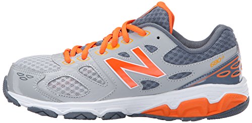 New Balance KR680 Youth Running Shoe (Little Kid/Big Kid), Grey/Orange, 5 W US Big Kid