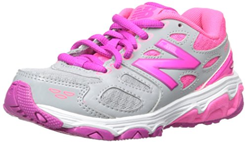 New Balance KR680 Youth Run Running Shoe (Little Kid/Big Kid),Grey/Pink,4.5 M US Big Kid