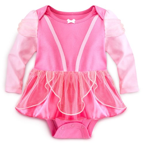 -. Brand : Disney -. Department : baby-girls -. Feature : Authentic and exclusive Disney Store design with reliable quality and durability / Small bow and ribbon details; Long sleeves accented with tulle / Tulle layered over satin skirt / 100% organic cotton with two rows of snaps at the bottom, giving an extra inch of length to allow bodysuit to grow with your baby -. ProductGroup : Apparel -. ProductTypeName : APPAREL -. Title : Disney Store Aurora/Sleeping Beauty Onesie Costume Bodysuit