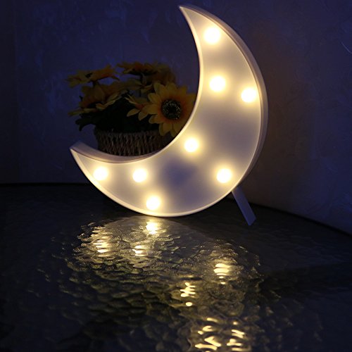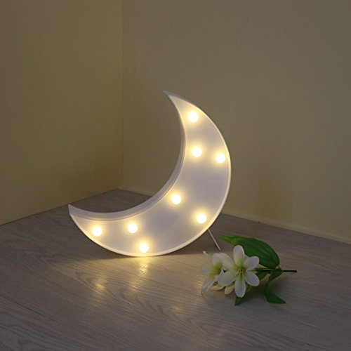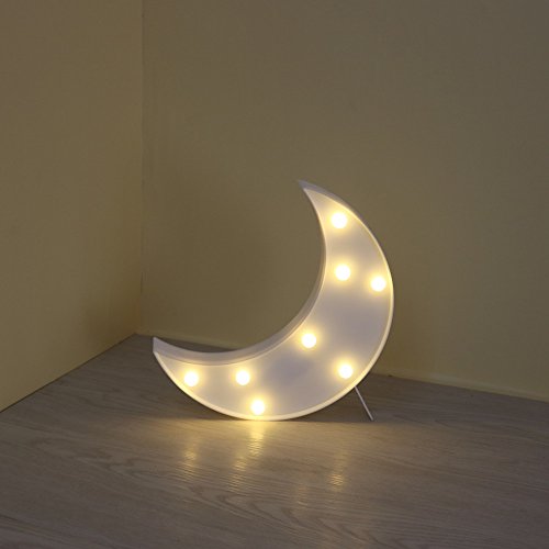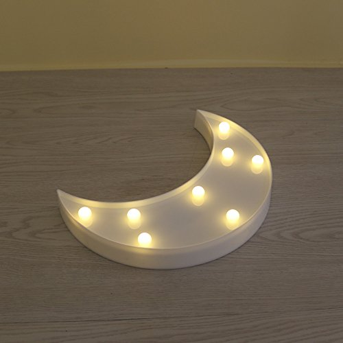 DELICORE Battery Operated Night Light LED Marquee Sign with Wireless Remote Control for Kids' Room, Bedroom, Gift, Party, Home Decorations(White Moon)